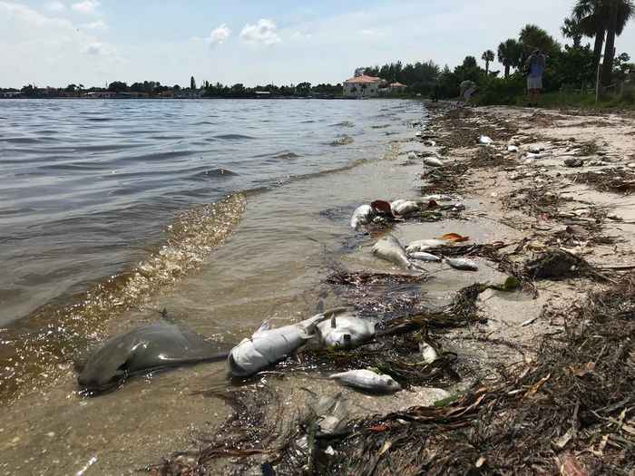 Красные приливы — масштабное цветение воды, вызванное размножением одноклеточных водорослей динофлагеллятов. При размножении выделяет нейротоксин, который отравляет моллюсков и беспозвоночных. Рыбы поедают беспозвоночных и тоже травятся, морские животные едят отравленную рыбу и массово умирают, короче, береговая линия завалена трупами морских обитателей, а всё потому, что водоросли решили немного поцвести.