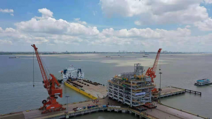 Если смотреть со стороны, то модуль заползает с причала на палубу судна, а люди просто стоят и смотрят на это, и даже не суетятся никак.