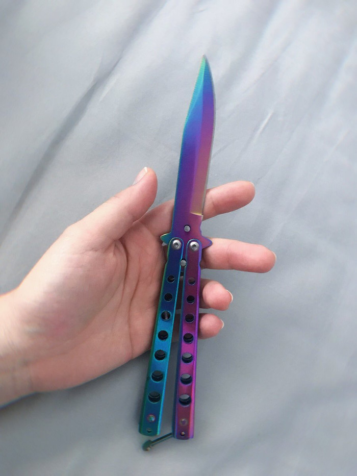 Однако же у нас можно носить бабочки с длиной клинка, если я не ошибаюсь, менее 9 см, а также всевозможные расчёски, открывашки, тренировочные бабочки с затупленным клинком и т.п.