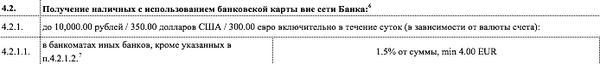 4 евро ! 4 евро, Карл! То есть если кому то приспичит снять 100 рублей комиссия составит 280%!!!