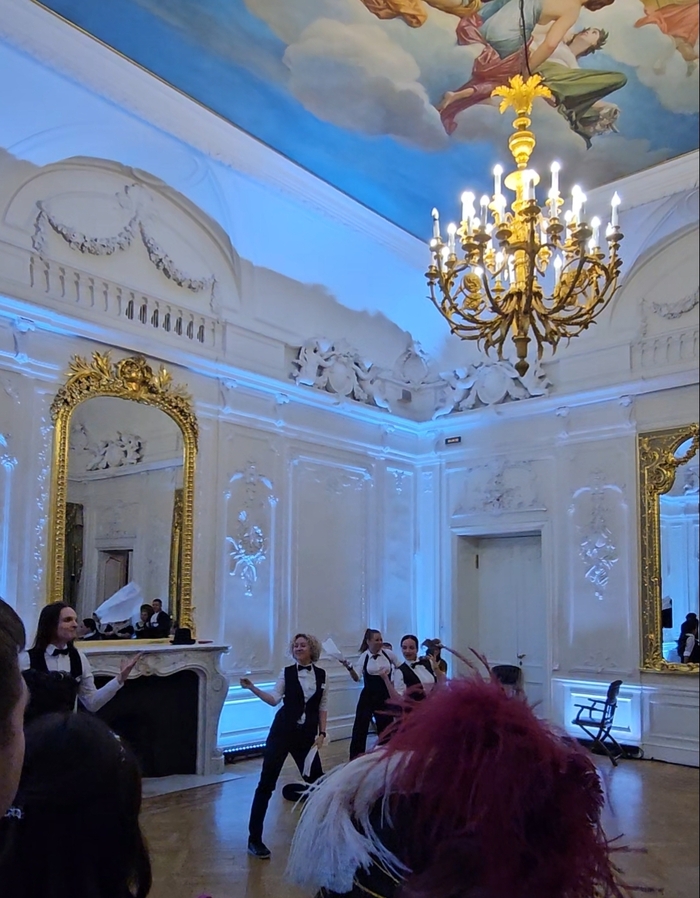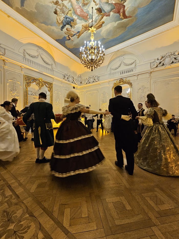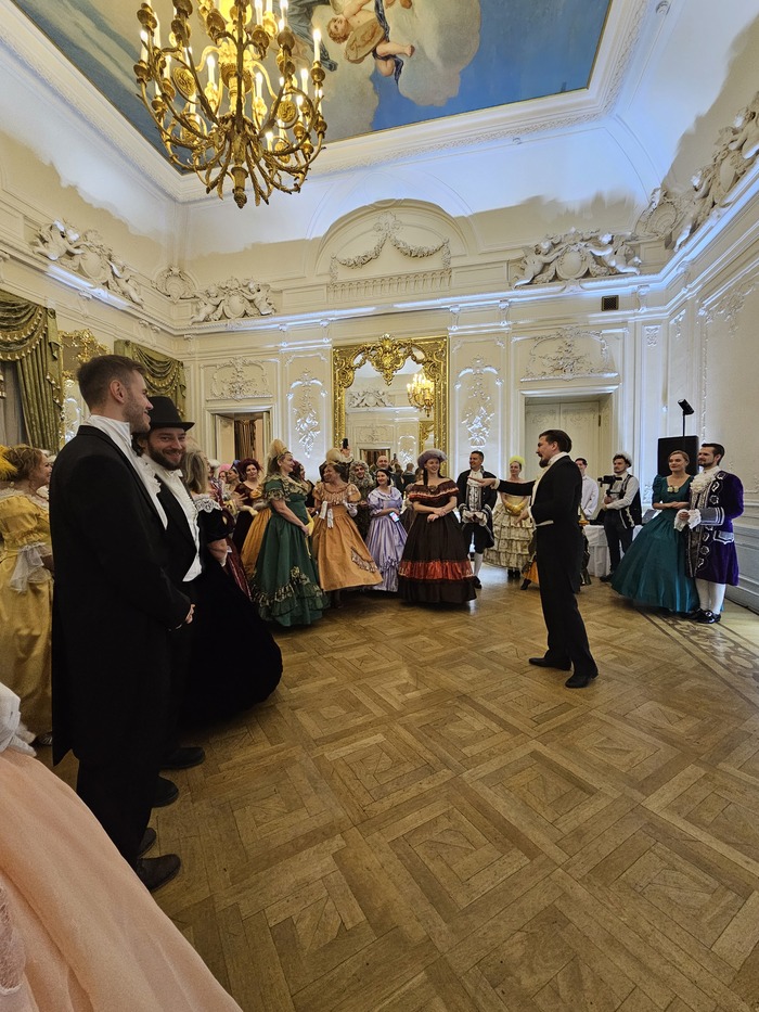 Формат мероприятия подразумевает общение и исторические танцы для девушек и юношей. Военный оркестр, играющий вальсы, красивые бальные платья у девушек и строгие, но элегантные костюмы у парней... атмосфера просто невероятная)