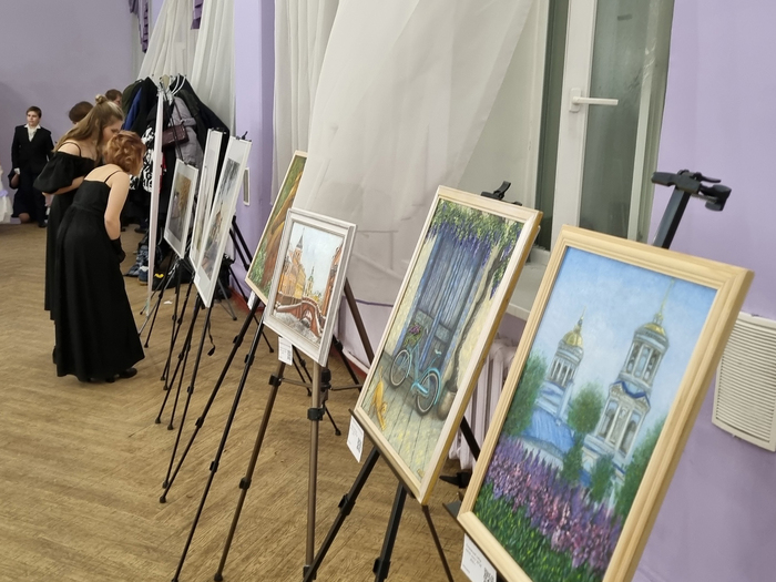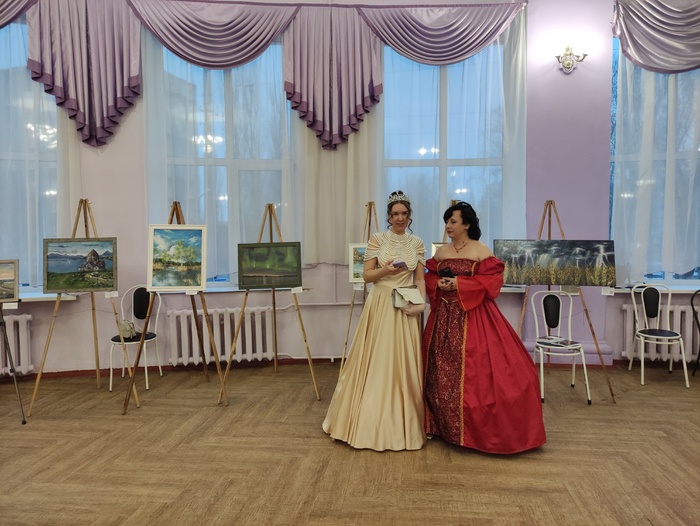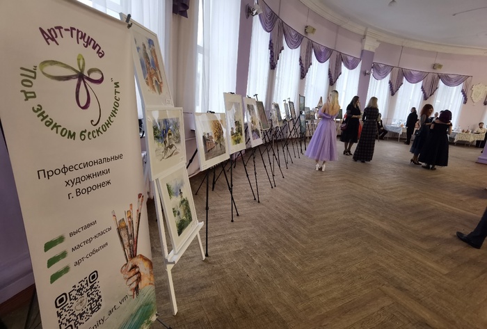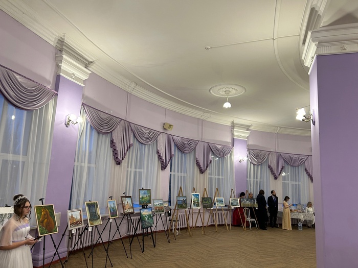 Наша арт-группа "Под знаком Бесконечности" создала в бальном зале небольшую картинную галерею для гостей ( как оказалось, наши картины стали еще и отличным фоном для многочисленных фотосессий).