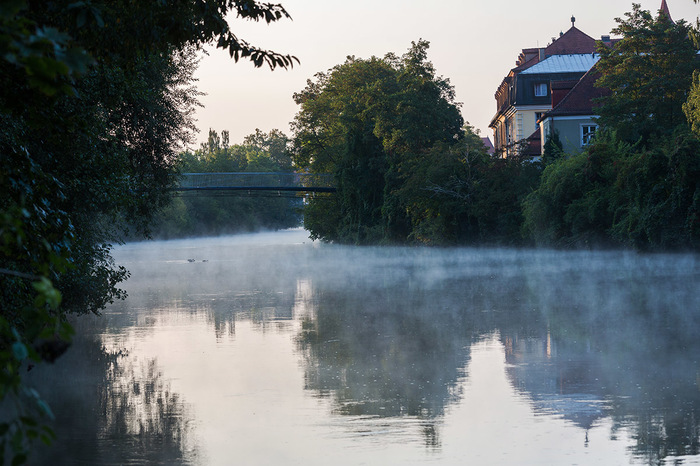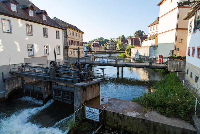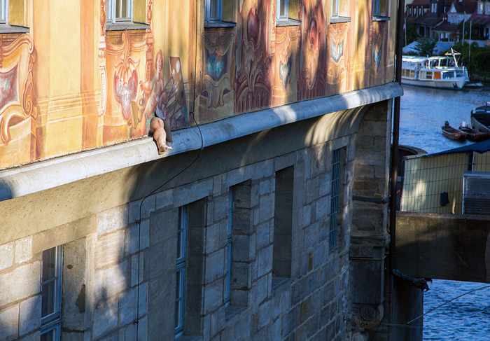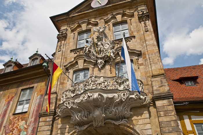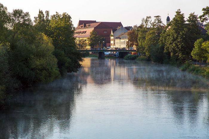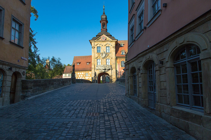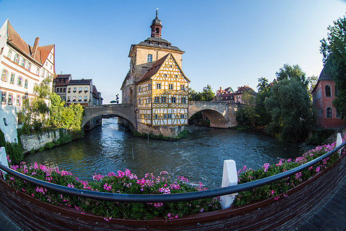 Ратуша уникальна в своём роде. Она была построена на искусственном острове на реке Регниц. В Средневековье река делила территорию на городские и епископские земли; долгое время шли споры, на чьих владениях строить ратушу. Создание искусственного острова и постройки на нём стало компромиссным решением проблемы :)