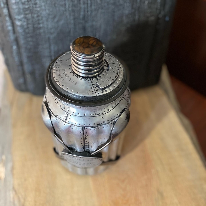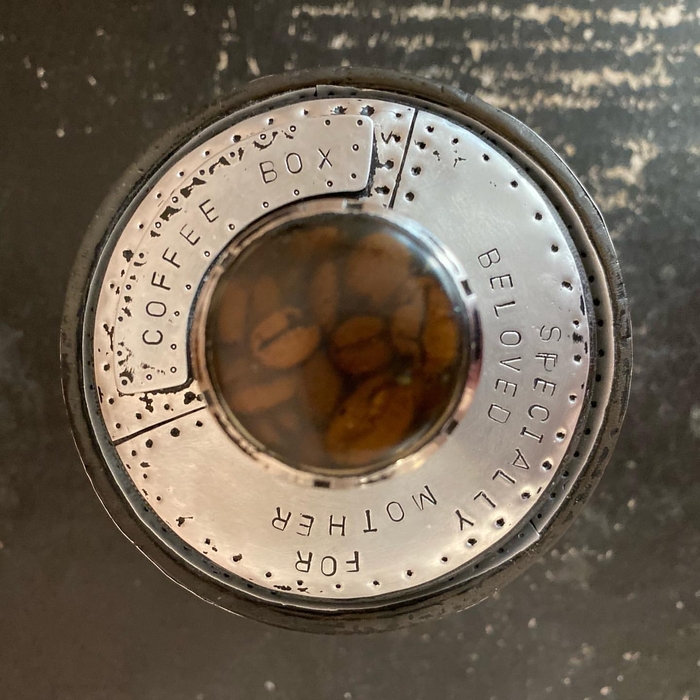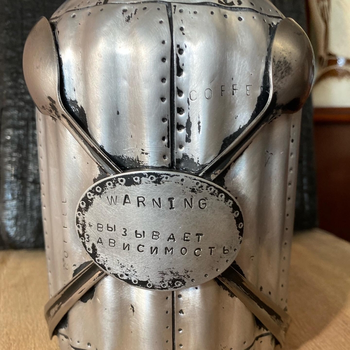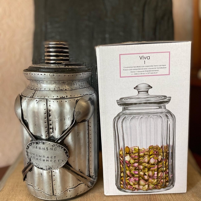 Стеклянная банка отделанная алюминием для хранения кофейных зёрен по заказу Мамы