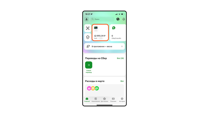 Шаг 1 — зайдите в приложение СберБанк Онлайн и кликните карту на главном экране.
