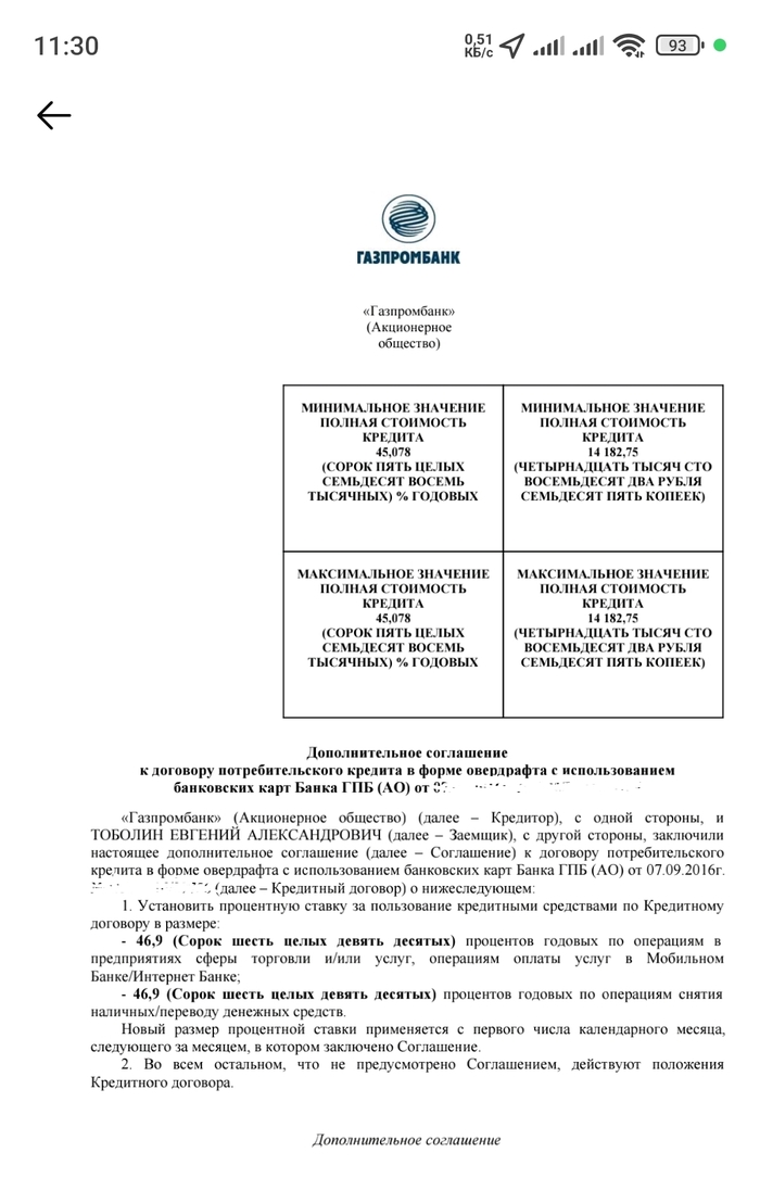 При этом оказалось, что если перейти по приложенной ссылке, то кроме лимита увеличивается ещё и процент. Был 24%, а новый почти 50%. Но они посчитали это незначительной информацией, в смс об этом не сообщили и запрятали в документе на 156 страниц.