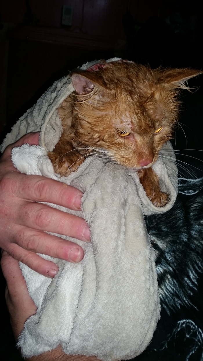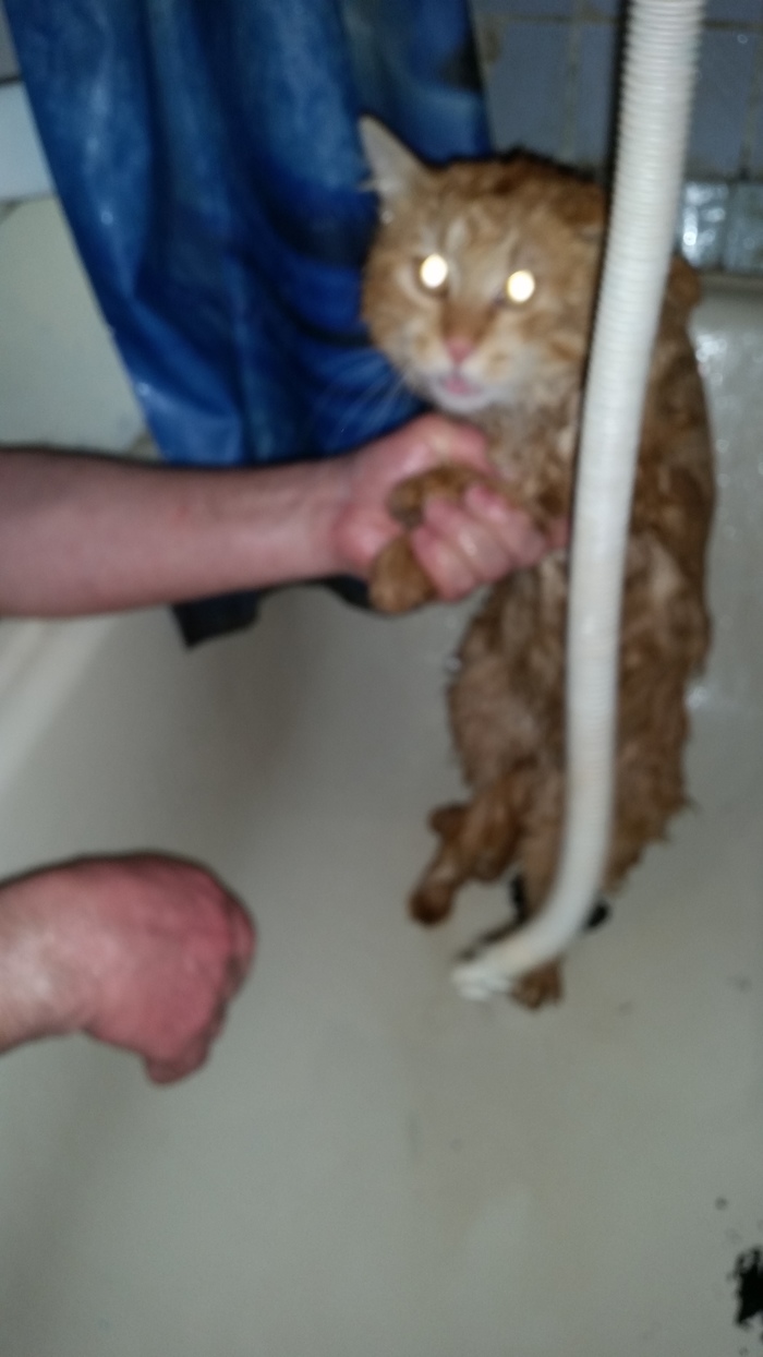 В продолжение темы, про купание https://pikabu.ru/story/kupanie_slepogo_kota_5610491. Перед зимними морозами, после осенней дождливой погоды, проводим антиблошиную профилактику, дегельминтизацию и обязательный банный день. По первому снегу в чистой шубке! Только эта зима нас обманула.)