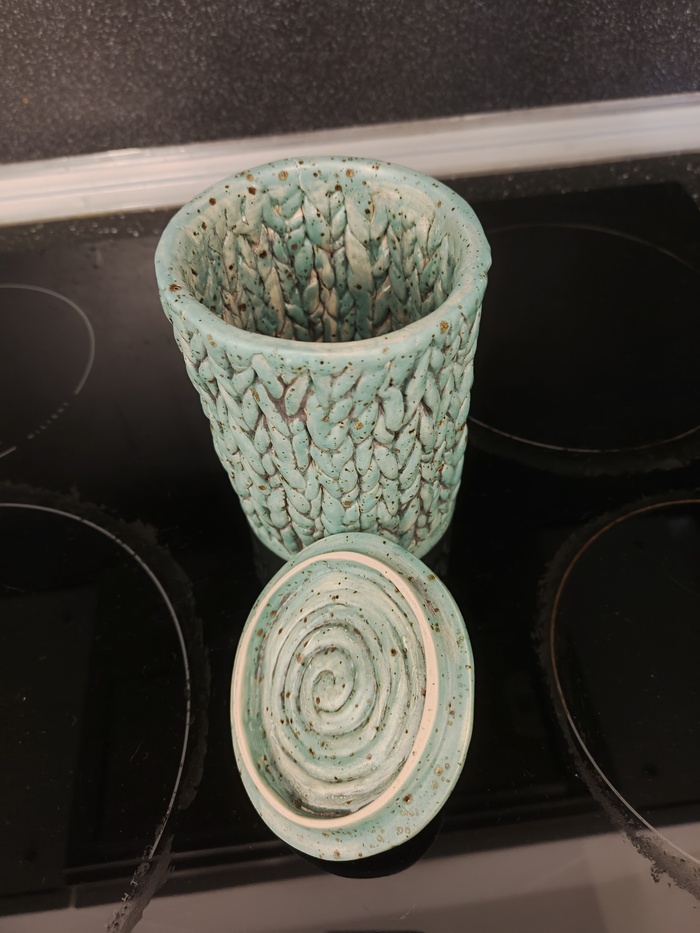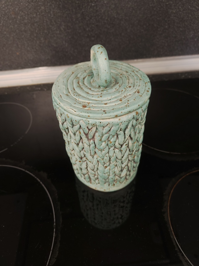 Сделано с техникой применения жгутов или в простонародье колбасок. Крутятся руками мелкие колбаски, потом соединяются между собой. Желательно для повышения прочности места соединения колбасок друг к другу царапаются и смазываются шликером. Мини, даже микро ликбез про шликер и что это вообще такое можете прочитать в этом моём посте - Кувшинчик для английского молока. Керамика ручной работы