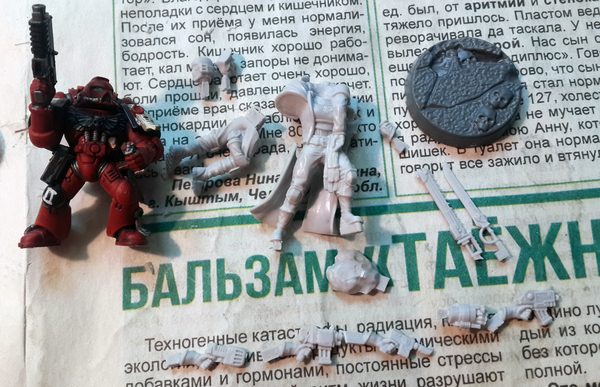 Очень много всякого обвеса, вполне могут пригодится при конверсии командного состава Имперской Гвардии, хотя я и собираю космодесов, но подобную модельку я хотел получить в свою коллекцию. Уж больно комиксы @GraySkull 'а понравились