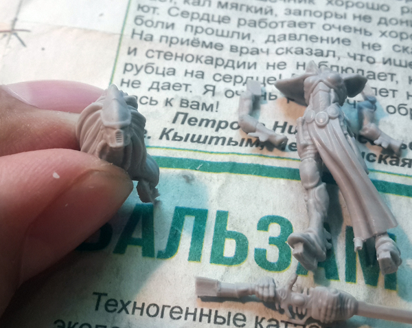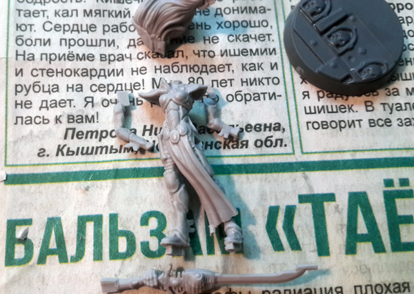По сравнению с масивным Ангелосом Райвель-малютка. У неё очень много мелких деталей, которые я боюсь потерять, например та малюсенькая деталь локтя левой руки, да там остаток литой дорожки и то больше,придётся внимательно и осторожно всё это счищать.