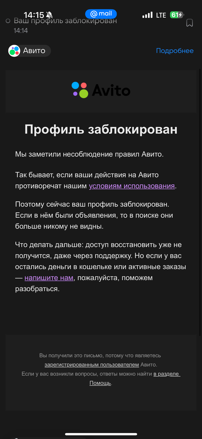 Если были вопросы — почему нельзя было: — дать предупреждение? — запросить документы? — провести дополнительную проверку? — ограничить объявления, но не уничтожать весь аккаунт?