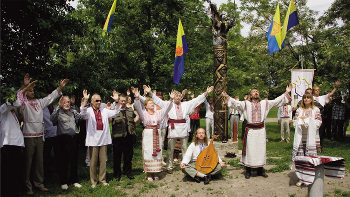 Еще одна ветвь нетрадиционных религиозных течений — это язычники. В нее так или иначе входят большинство боевиков правого толка на Украине, они еще до майдана конфликтовали с православной церковью. Однако, как позже оказалось, причина этому совсем не воинствующий атеизм. Сегодня радикалы разделились на две основные группы. Одни превратились в боевые отряды раскольников и помогают им захватывать храмы УПЦ, в основном на Западной Украине. Другие (а таковых всё больше) — открыто проповедуют языческие верования.
