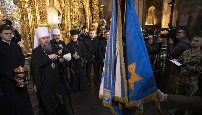 Сергей Думенко похвастался тем, что его Свято-Михайловский Златоверхий монастырь сыграл незаурядную роли в евромайдане, что правда: монастырь был сделан ночлежкой, а также штабом и складом оружия "самообороны майдана", и "монахи" монастыря помогали боевикам делать "коктейли Молотова". Он, как всегда, резко обругал Россию за "империализм" и обозвал православие "столпом украинского государства". Рядом с ним восседал открыто покровительствующий ПЦУ председатель Государственной службы этнополитики и свободы совести Виктор Еленский, который тоже произнес русофобскую речь.