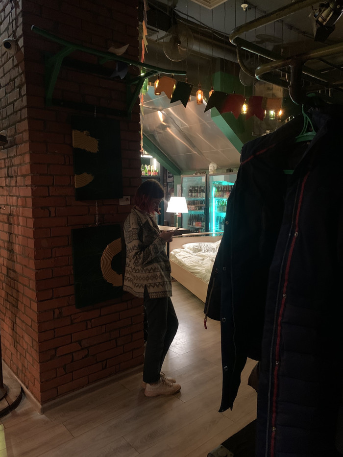 Собственную поверхность для сна подставлять под такое я все-таки не решился и полез на авито в поисках дешевой и не сильно ушатанной большой кровати, которая выглядела бы и визуально читалась как кровать, а не как моя домашняя подставка под матрас. Примерно на третьей странице я уже набираю продавца, не сильно обращая внимание на то, что уже почти 10 вечера, и за пять минут разговора он получает от меня 3 тысячи рублей как половину оплаты и обещание забрать кроватку в течение полутора часов из пригорода(я понимал, что если не сделаю каких-то шагов к воплощению сейчас, то проснувшись утром отложу эту затею в долгий ящик сомнительных идей). Немного прибалдев от стремительности осуществления плана дальше я впервые захожу в раздел грузоперевозок и после семи звонков мне попадается водитель, готовый вписаться во всю эту авантюру по двойному тарифу, за тысячу рублей вместо 500. Это забавное ощущение приключения, когда ты провалявшись весь день дома выбегаешь в 11 вечера на улицу, потому что тебя ждет незнакомый мужик на здоровенной грузовой газели и вы вместе едете 20 минут в какую-то глухомань разговаривая за жизнь и все такое, просто потому, что ты захотел какую-то странную хотелку, не ведущую на этом этапе еще вообще ни к чему. Кое-как неожиданно большая, по сравнению с моими представлениями, кроватка влезает в кузов и мы отвозим её в бар, закрывая в подсобном помещении.