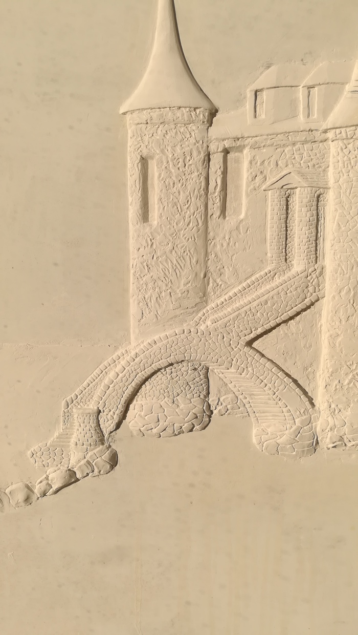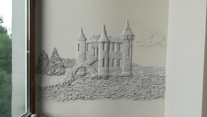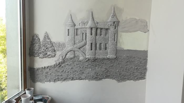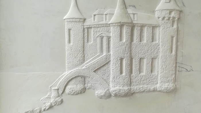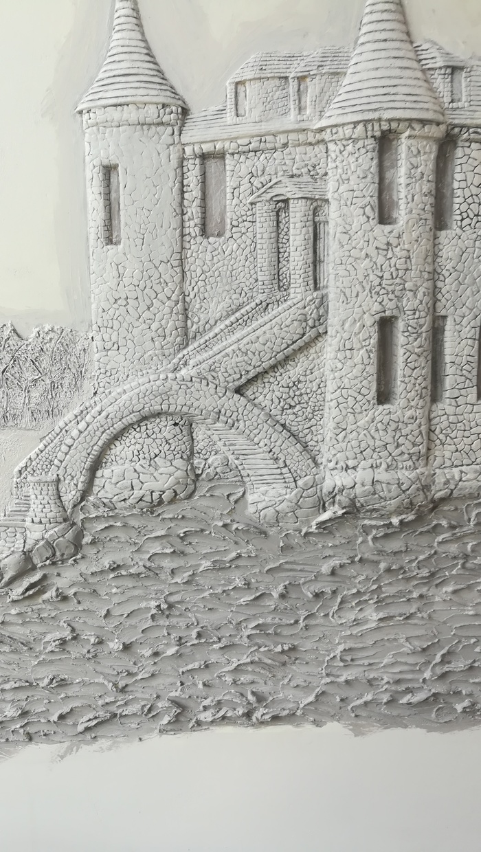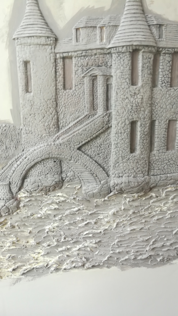 Моя пробная работа в технике барельеф у себя дома. Замок Нойшванштайн. Делала в цвете, долго, самоучка и не художник, пропорции высчитывала с калькулятором и линейкой. Хотелось бы конечно поработать с профессионалами.