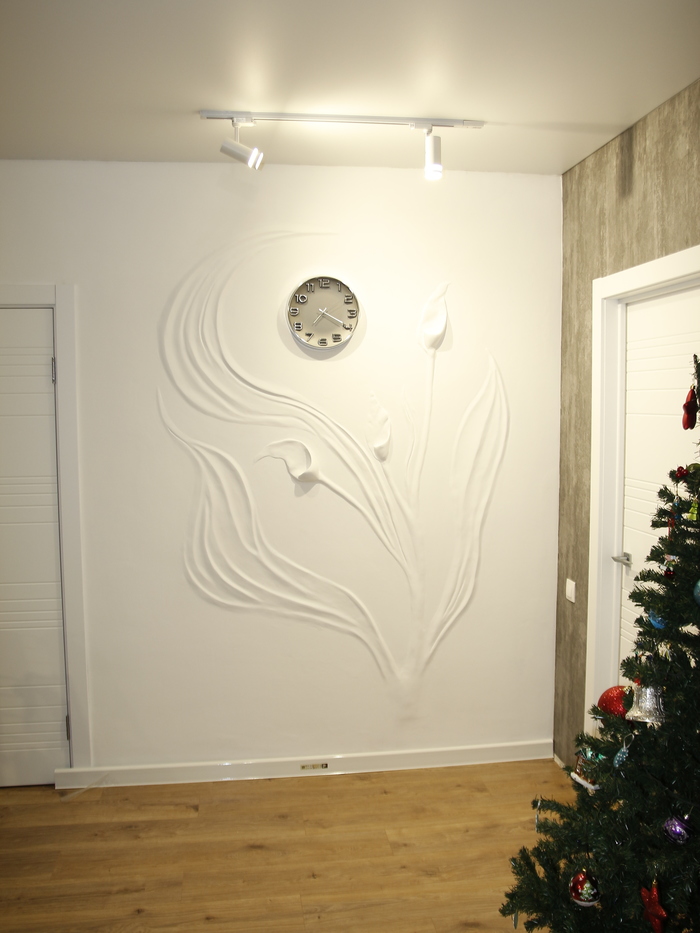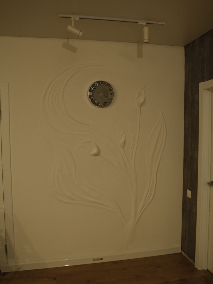 Пока раздумывал делать ли декоративную штукатурку, чтобы визуально спрятать все неровности на стене при просматривании фотографий в интернете наткнулся на фото с барельефами на стене. Решил посмотреть на ютубе поподробней как они делаются.
