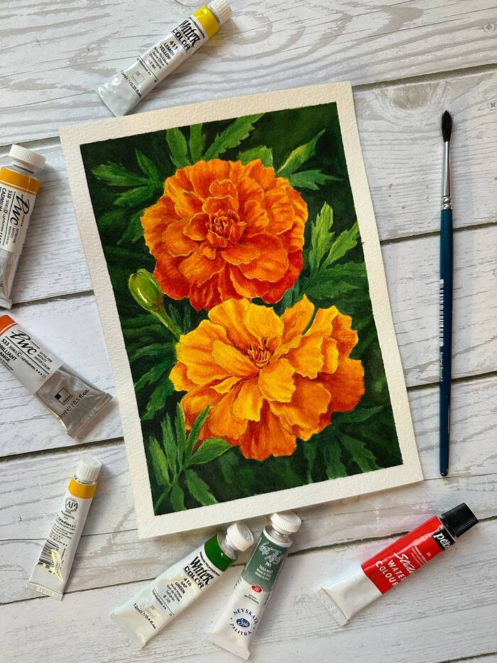 Бархатцы акварелью