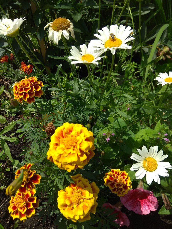 Прошла зима, весна настала. Ещё немного и будет лето. А чтоб легче ждать было ждать, вот вам бархатцы и маргаритки.