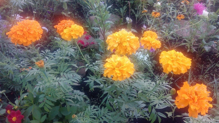 Бархатцы на балконе неуклонно, сметая всё на своем пути, разрастаются.