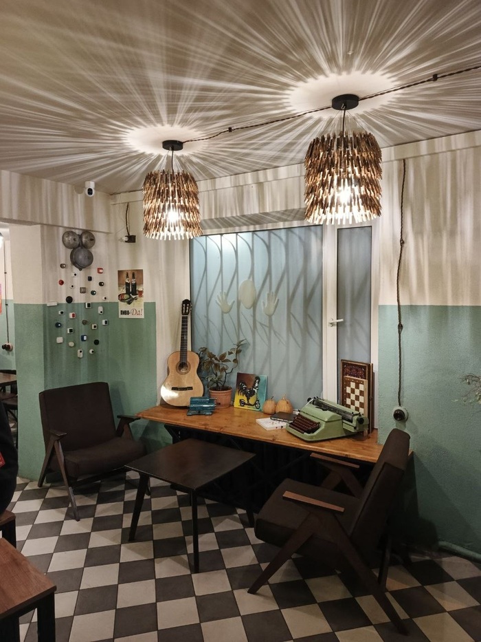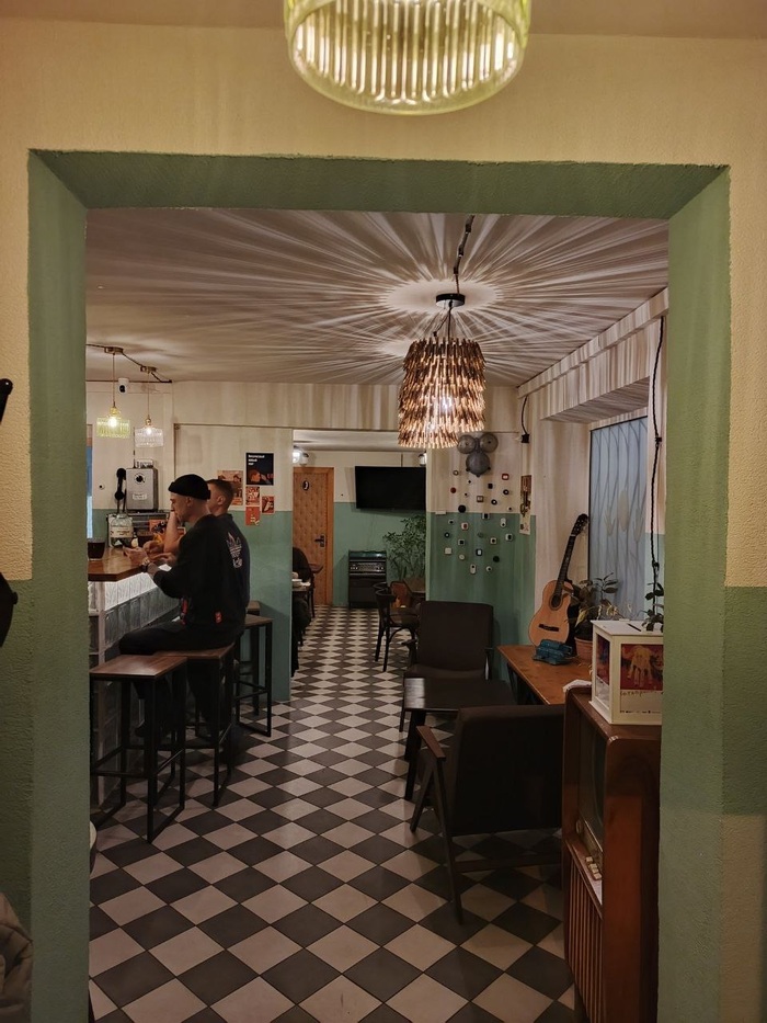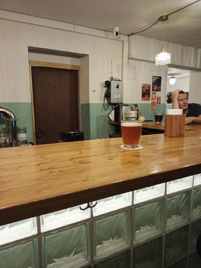 Бар очень приятный. много дерева в интерьере. Барная стойка сплошной брус. Очень доброжелательный бармен. Аглицкого не знает, общались с трудом при помощи онлаин-переводчика.
