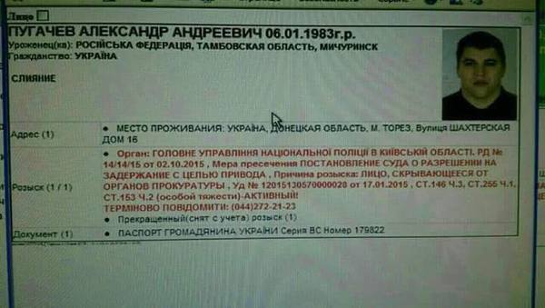 Как сообщили в МВД Украины, напавшим на патрульных является боец батальона «Торнадо» 33-летний Александр Пугачев, который находится в розыске за совершение тяжких преступлений с сентября 2015 года.