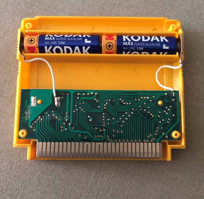 Картридж Денди с Джеки Чаном и на батарейках! Это образовательный китайский самопал. Дело в том, что популярность восьмибитных консолей в Китае была столь велика, что даже в школах программировать китайские дети зачастую учились именно на них. Это привело к тому, что китайцы начали сами разрабатывать восьмибитный софт. Он был самым разным – от простеньких эмуляторов бейсика до навороченных монстров. Например, можно было учить английский с Джеки Чаном. Чтобы не терять прогресс, картридж питается от двух пальчиковых батареек.