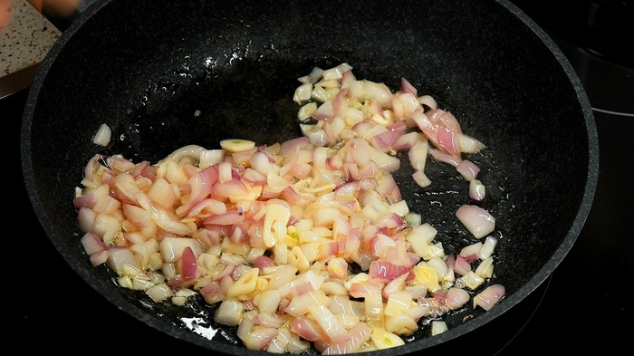 Добавляю оливковое масло. Примерно две столовые ложки. Затем, чтобы все ингредиенты перемешались, накрою чашку тарелкой и потрясу. Но это можно сделать, конечно, и с помощью обычной столовой ложки. Перекладываю в форму для запекания.