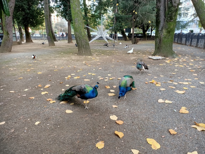 Павлины и уточки на которых можно поглядеть в местном птичнике за бесплатно.