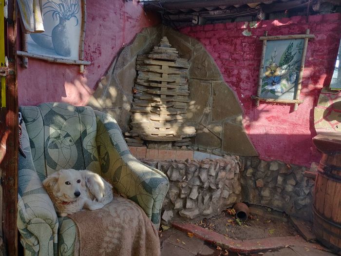 Фонтанчик и одна из пёселей. Их, кстати, отбили у хозяина, который издевался над ними и бил так, что было слышно всему району. Батя не выдержал жалобный вой и почти без боя забрал их.