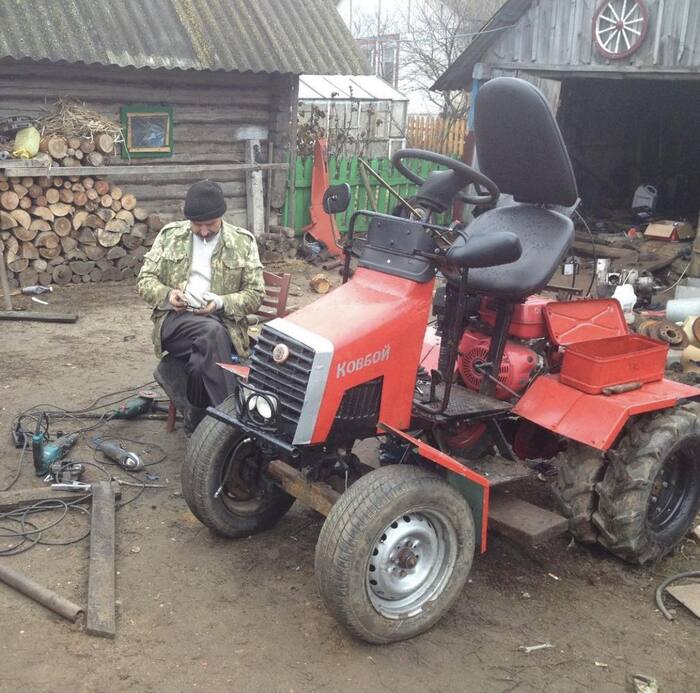 Когда я стал взрослым и все время занятым, подарил бате мотоблок. И тут началось! Гараж задышал новой жизнью. Батя увлечённо создавал из мотоблока трактор.