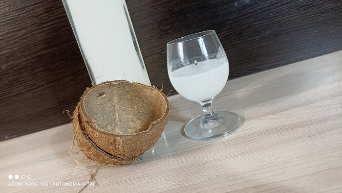 Получается Очень интересная настойка, мутно-белого цвета. На запах кокос слабо уловим, а вот во вкусе он уже чувствуется отчётливо. Пьётся мягко с приятным, бархатным послевкусием. Любителям кокосового вкуса, зайдёт на ура, я уверен. Эх! Добавить бы ещё шоколад и получилось бы баунти.