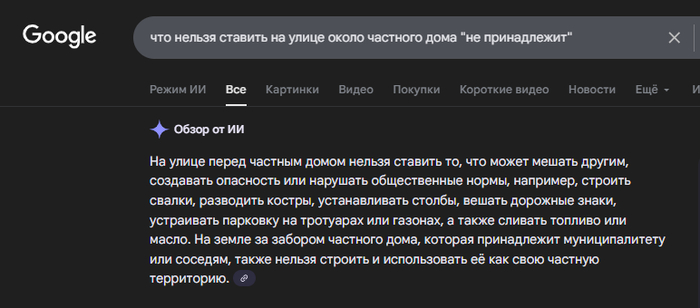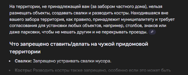 Место около дома на улице - не принадлежит хозяинам дома. Там нельзя ставить то, что будет препятствовать приезду ремонтых машин, которые, например, будут ремонтировать линии электропередач, копать ямы, чтобы добраться до газовых и водопроводных труб, или канализации.