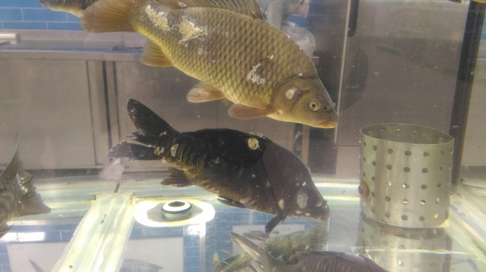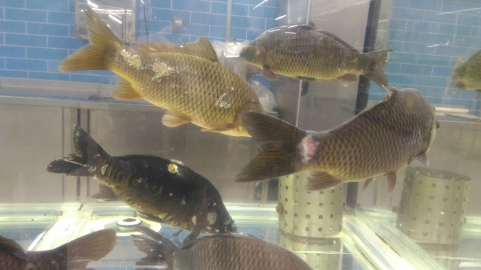 Сегодня (27.05.2019) в гипермаркете "Карусель" проходя мимо рыбного прилавка, увидела аквариум с живыми карпами для продажи.