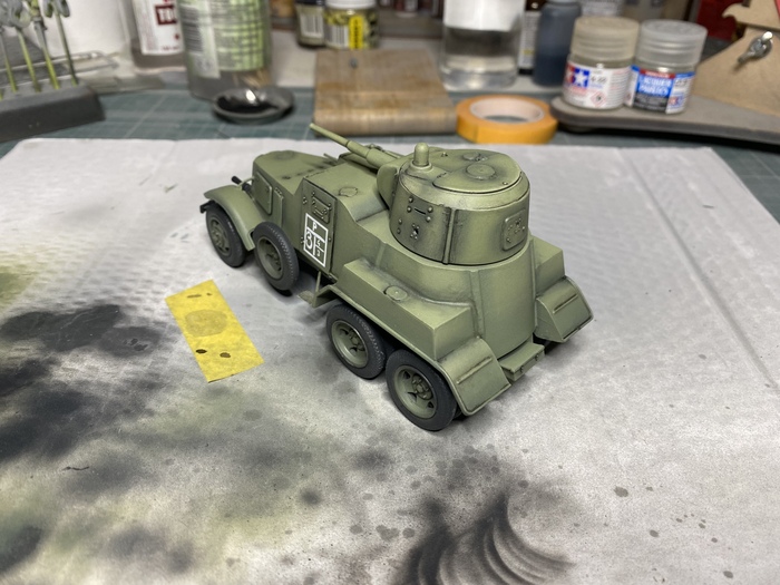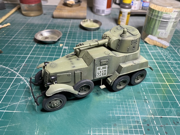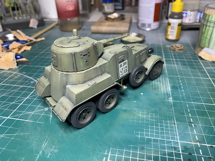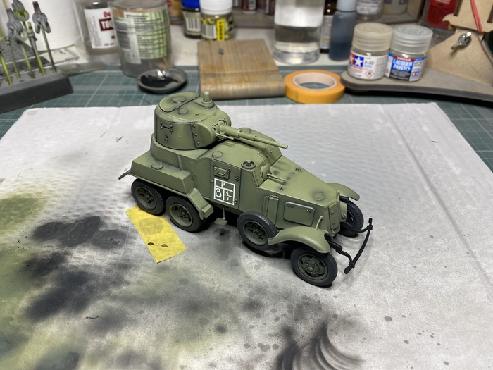 Аккуратно окрасил шины (да-да, я собрал броневик полностью, но иначе никак, так как колёса надо было как-то центровать).