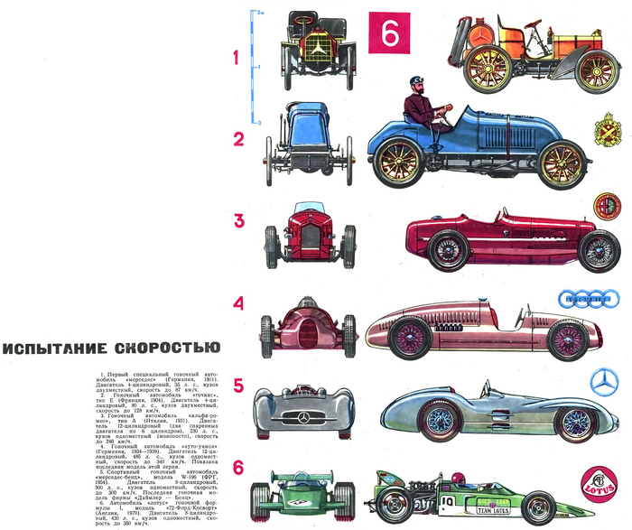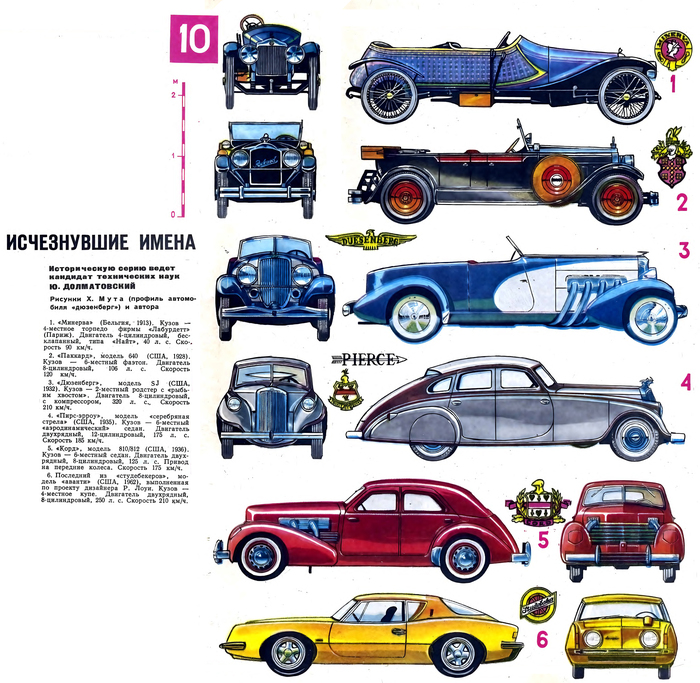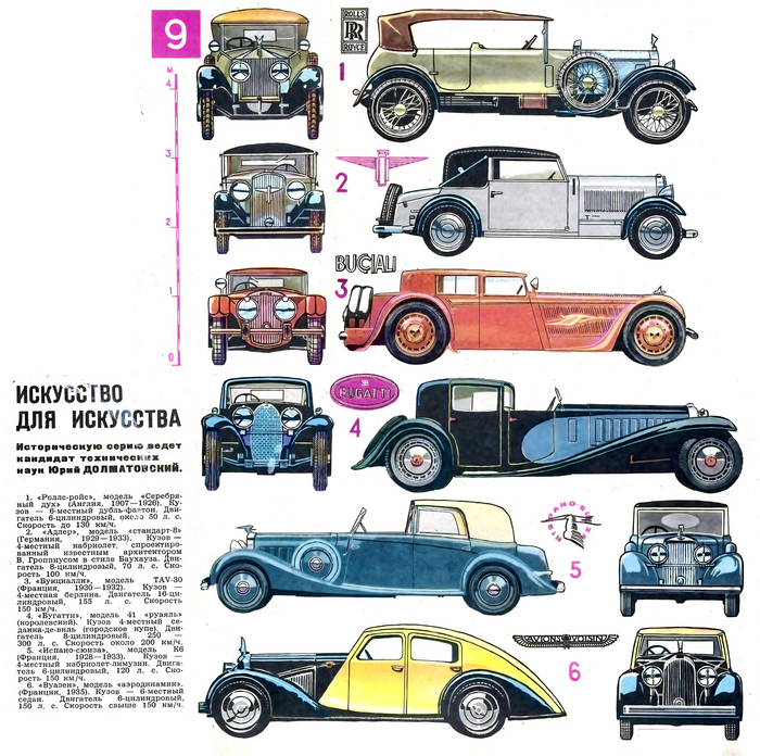 4 ряд: 1) "Руссо-Балт"; 2) Л-1; 3) ЗиС-101; 4) ЗиС 110В; 5) ГАЗ-12; 6) ЗиС-114.