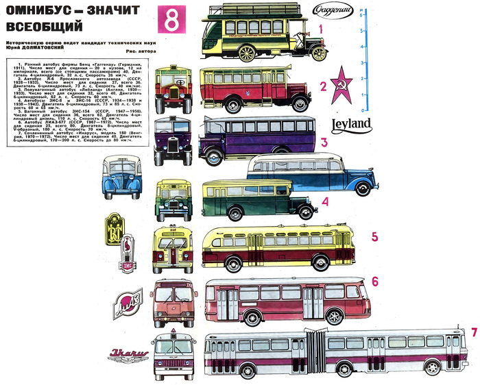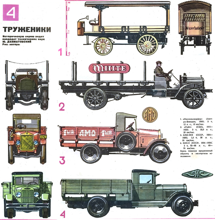 8 ряд: 1) Туристский АМО-Ф15; 2) ЗиС-8; 3) ГАЗ-55; 4) . "Юность".