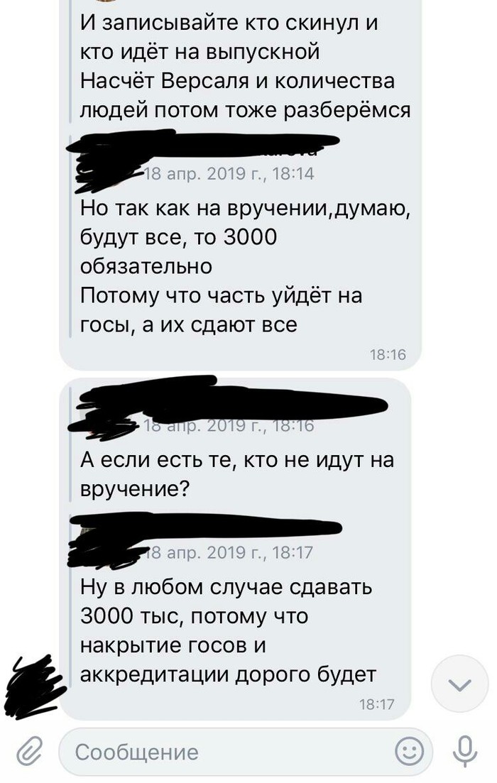 В нашем доблестном универе собирают на госы по 3т.р с человека (около 500 человек) что составляет примерно 1.5 миллиона рублей. Говорят что мероприятие будет проходить в гкз нефтяник, и если захочешь позвать туда родителей будь добр купить ещё и билет для каждого.(500р)