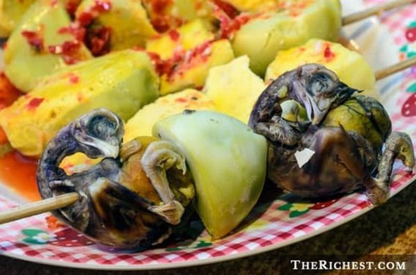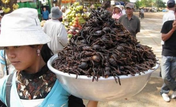 Арахнофобы, ваш выход! Настало время попробовать настоящий деликатес из Камбоджи. Этих милых паучков выращивают специально для последующего приготовления. Возможно, история блюда восходит к периоду правления красных кхмеров, когда еда в Камбодже была в дефиците. Зажаренные с сахаром и солью тарантулы имеют мягкий вкус, напоминающий вкус цыпленка. Часто не рекомендуется есть живот, наполненный коричневатым веществом, образующимся из внутренних органов паука. Ну что, разыгрался аппетит?