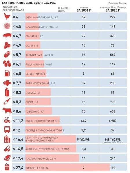 Вначале поднимем глаза ☝️ на приложенное изображение и глянем как изменились цены с 2001 года на 2025 год.