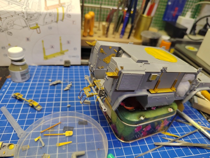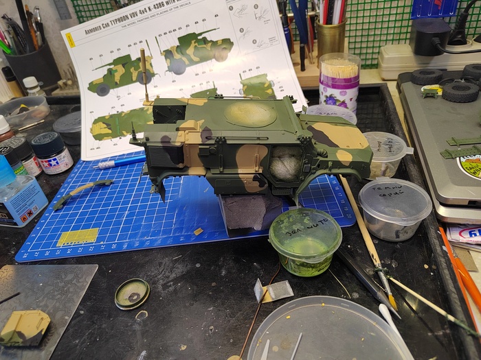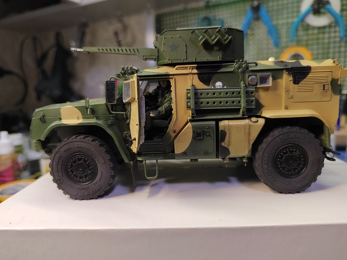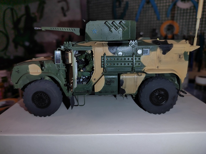 Собираю модели с детства, которое пришлось на застой и последующий распад СССР. Делаю для себя, как мне хочется. От допила и сборки получаю кайф и умиротворение. Только окраска меня бесит. Не умею. И подтвержденое нарушение цветовосприятия моя железная отмазка. Брал по предзаказу с травлом, стволом и печатными шинами. Бойца прикупил на озоне. Шины настолько понравились, что взял себе 3D принтер. Впоследствии напечатал колеса для бумеранга.