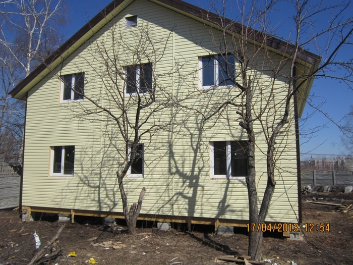 Наш дом начали строить зимой, к весне он был под крышей. Вот так он выглядит в процессе.