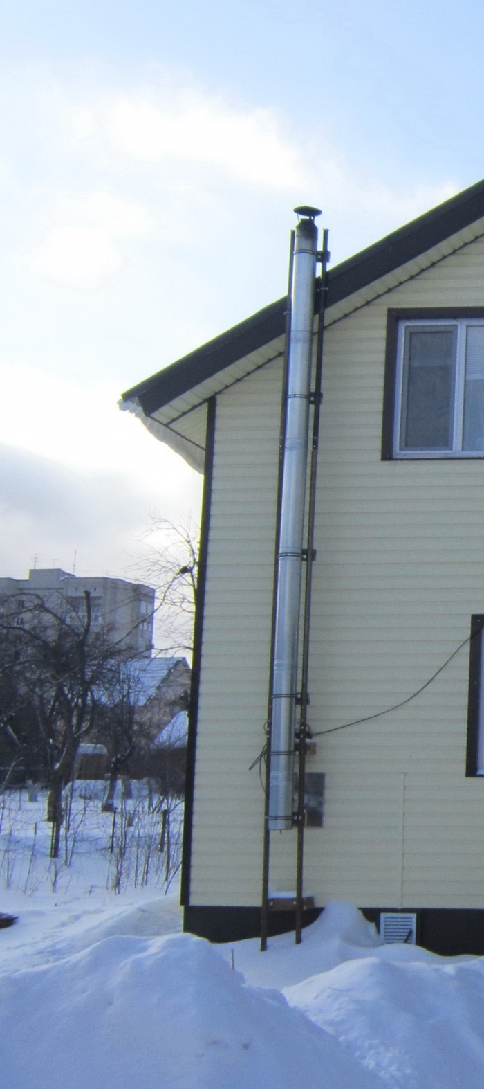 Купили сразу пару машин дров. Вот он греет дом намного мощнее. Ему разогнать систему до 80 С как нефиг делать. Соответственно дома стало очень тепло. Плюс для нас это была экзотика - топить печь. Но это все быстро проходит и надоедает. К примеру - утром надо ехать на работу - но и затопить надо. Выход конечно был - у нас папа с мамой пенсионеры - всегда дома - и они как то тут подхватили это дело. И режим отопления стал следующий. Утром капитальная растопка к 8.00 в доме уже затоплено. Все это горит до 10.00 но не сильно - жара тоже оказалась некомфортна. Путем проб и ошибок вычислили режим работы котла. В обед все прогорает. До вечера дом стоит. Вечером вечерняя топка начинается часов в семь в восемь. Прогорает где то три четыре закладки. При этом ближе к ночи труба полностью перекрывается и котел переходит на тление. Можно его забить и он будет тлеть до утра. Но мы так не делали. в 22.30 все прогорало и уже к этому времени все по комнатам - отбой. Под утро часа в 4.00 становится свежо - включается газовая система и нагоняет тепло к подъему. В шесть утра встает истопник и зажигает котел. Вот так. Плюс дрова же надо уложить в поленницы. Вобщем все что дешево то гиморно.