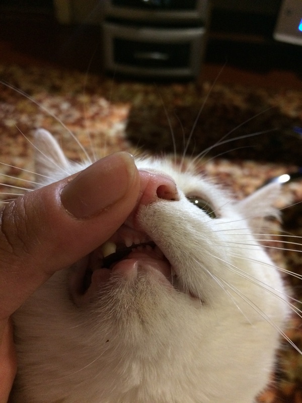 Но сейчас она живёт у меня, счастливая, ласковая и любит показывать язык.
