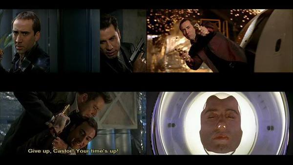 Кейдж и Траволта на съёмках фильма "Без лица"