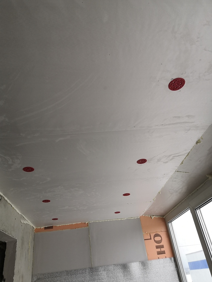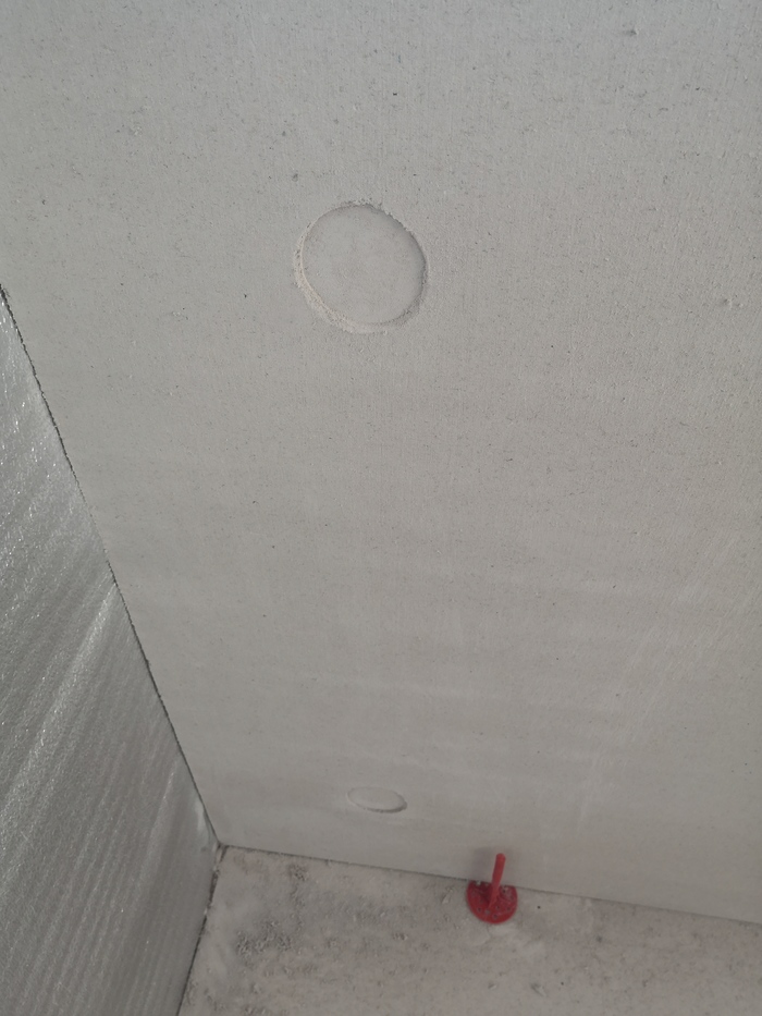 Опираюсь на главную идею проекта - переходим к следующему этапу и моим нововведениям. Листы ГВЛ на стены было принято крепить на «грибки» сквозь пеноплекс непосредственно к бетону, без воздушных прослоек и вентилируемых зазоров (щас меня закидают говном, но я все равно продолжу)))) все уже сделано, ребята, успокойтесь. Так же что бы в процессе шпатлевки не дай бог не украсть еще 3 мм свободного пространства, в местах крепления фрезером делал углубления по форме шляпки (пыльно, грязно, но взялся за гуж….).
