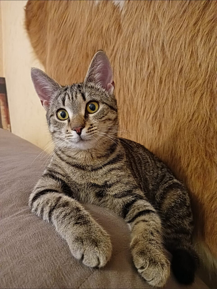 Очень хороший котёнок! Такая полосатопятнистая) лапочка.