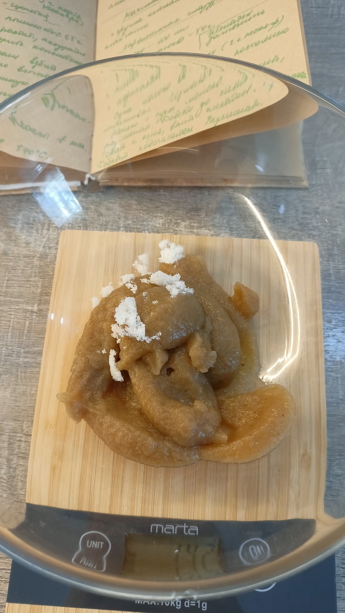 В яблочное пюре добавила 1.5г несахара, взбила до посветления.