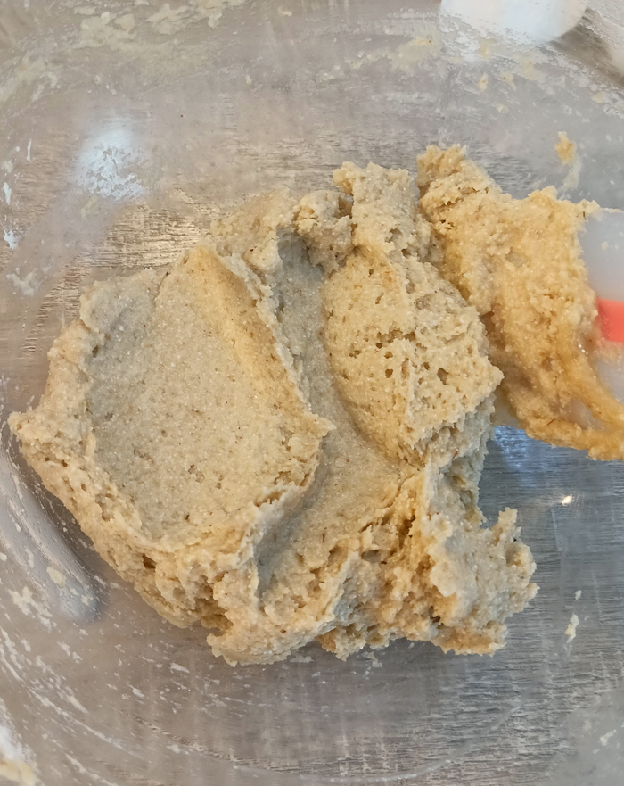 Что мне не понравилось: при таком подходе сложно замешать яблочную массу (уже с мукой) с яичной, добившись однородности. В следующий раз я думаю сначала смешать массу взбитое пюре-масло-несахар с массой яйца-эритрит, а потом порциями просеивать туда муку с разрыхлителем и постепенно вымешивать. Думаю, будет лучше вымешиваться. Также думаю, что в следующий раз попробую добавить ванилин, чтобы запах был всё-таки более кондитерским))