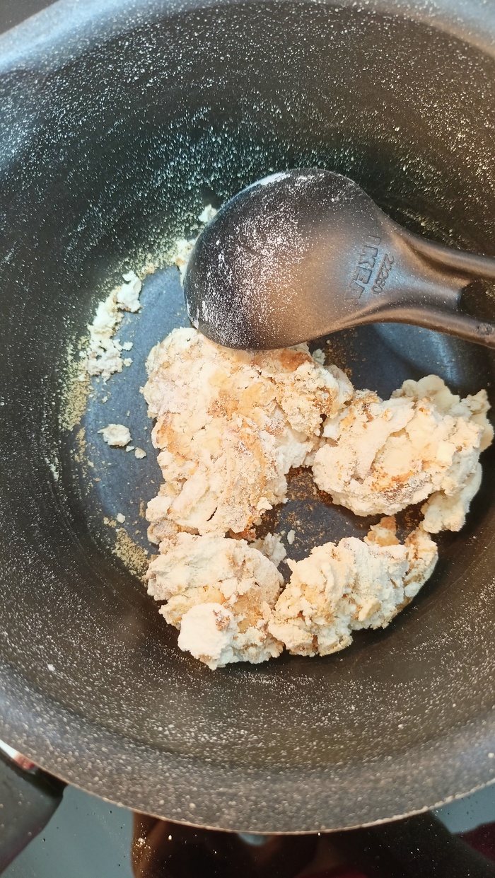 Комок отправила в измельчитель, разбила все снова в пудру. Пахнет топлёным молоком) вкус интересный (я вообще очень люблю сухое молоко. Прям ложкой из банки...)