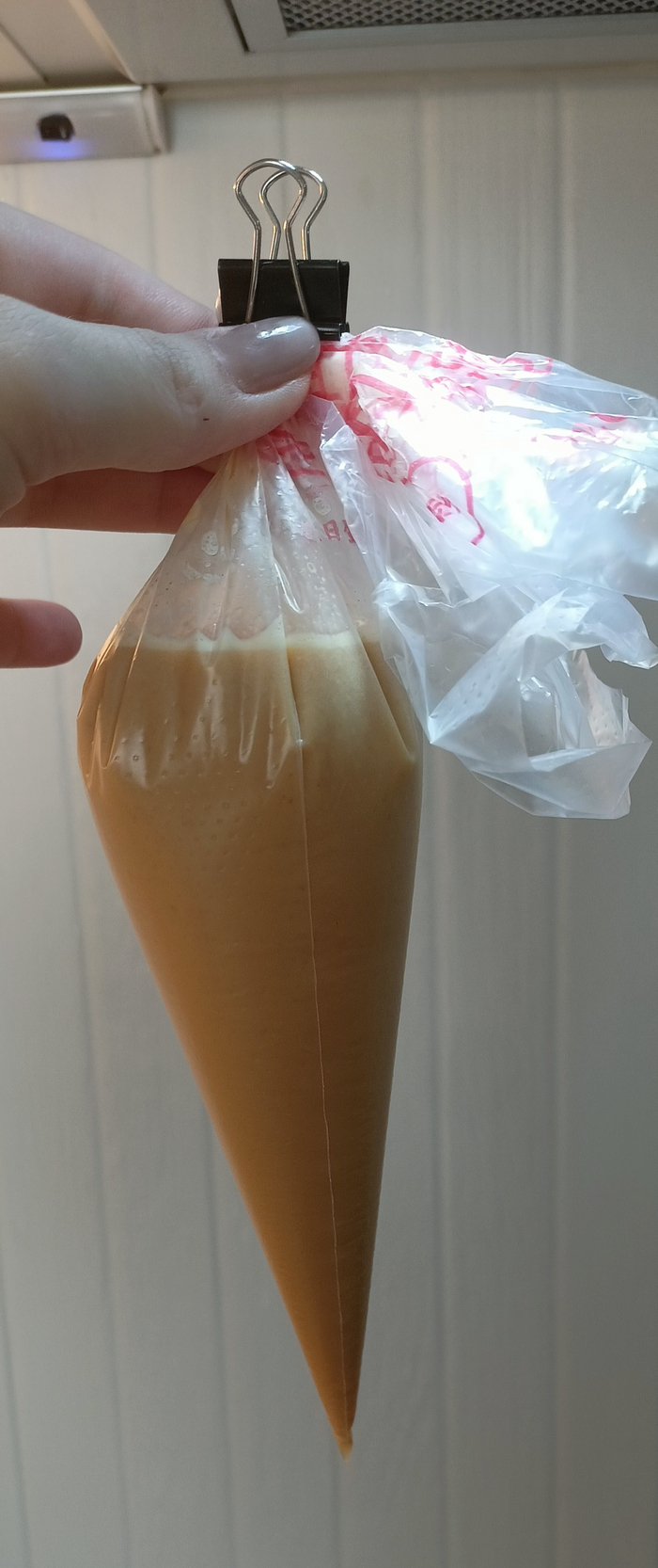 Переливаю глазурь в кондитерский мешок, оставляю остывать.